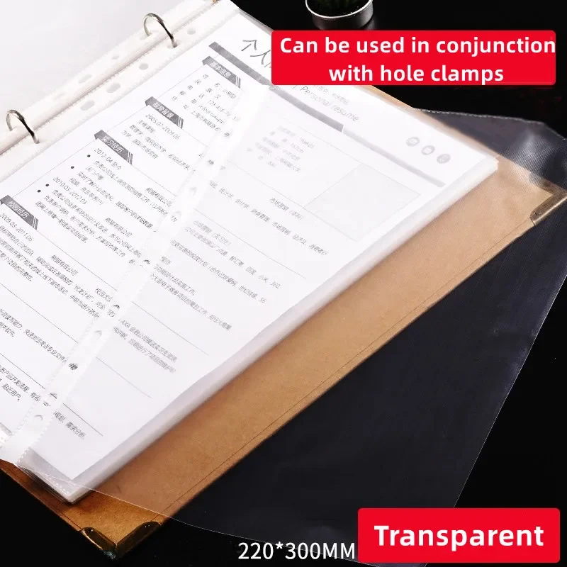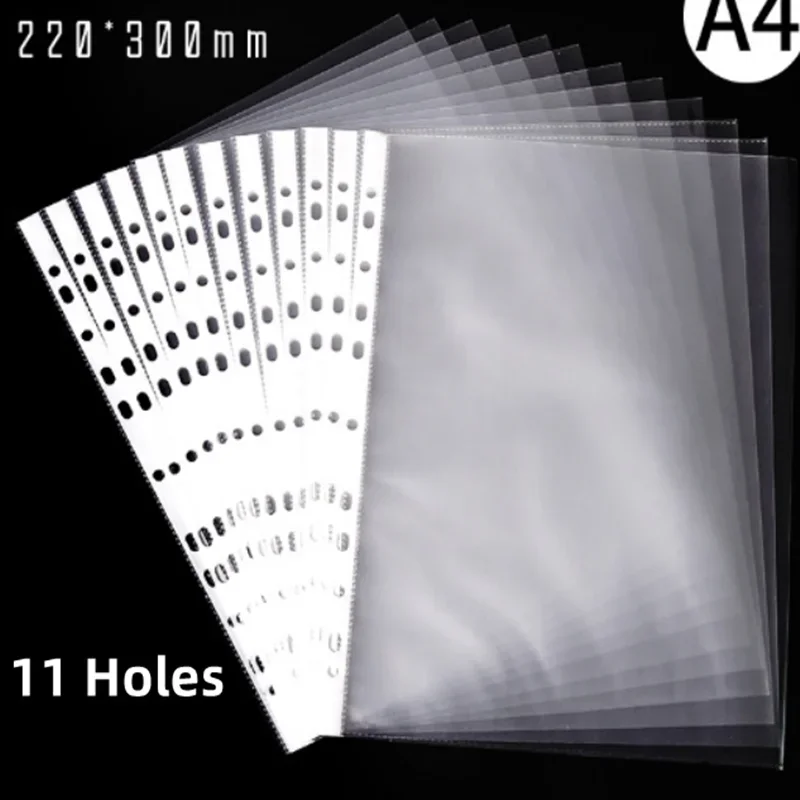 50PCS A4 Clear PVC Sheet Multipurpose File 11-Hole Loose Leaf Page Document Punched Pocket Folder Sheet Protector for File Pape