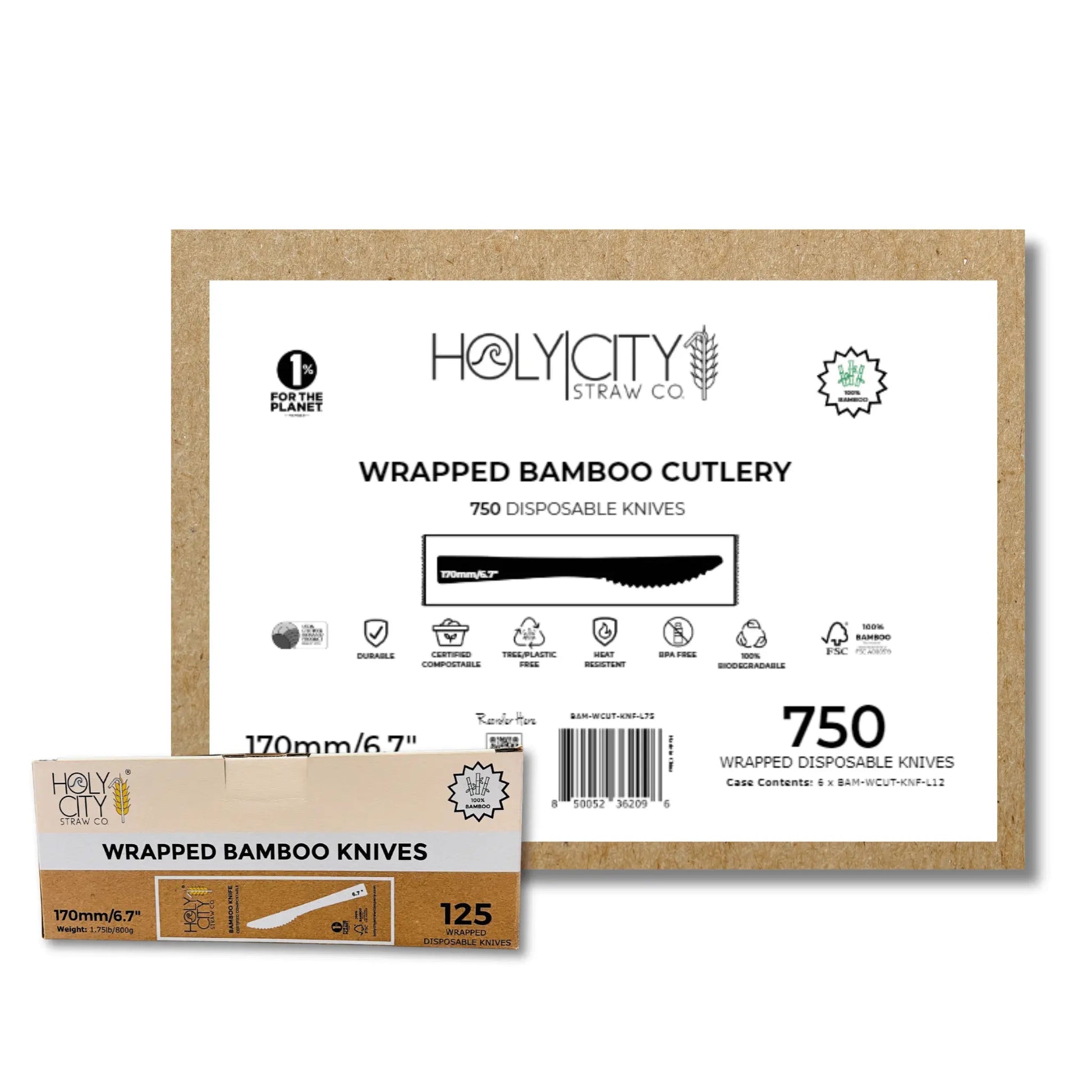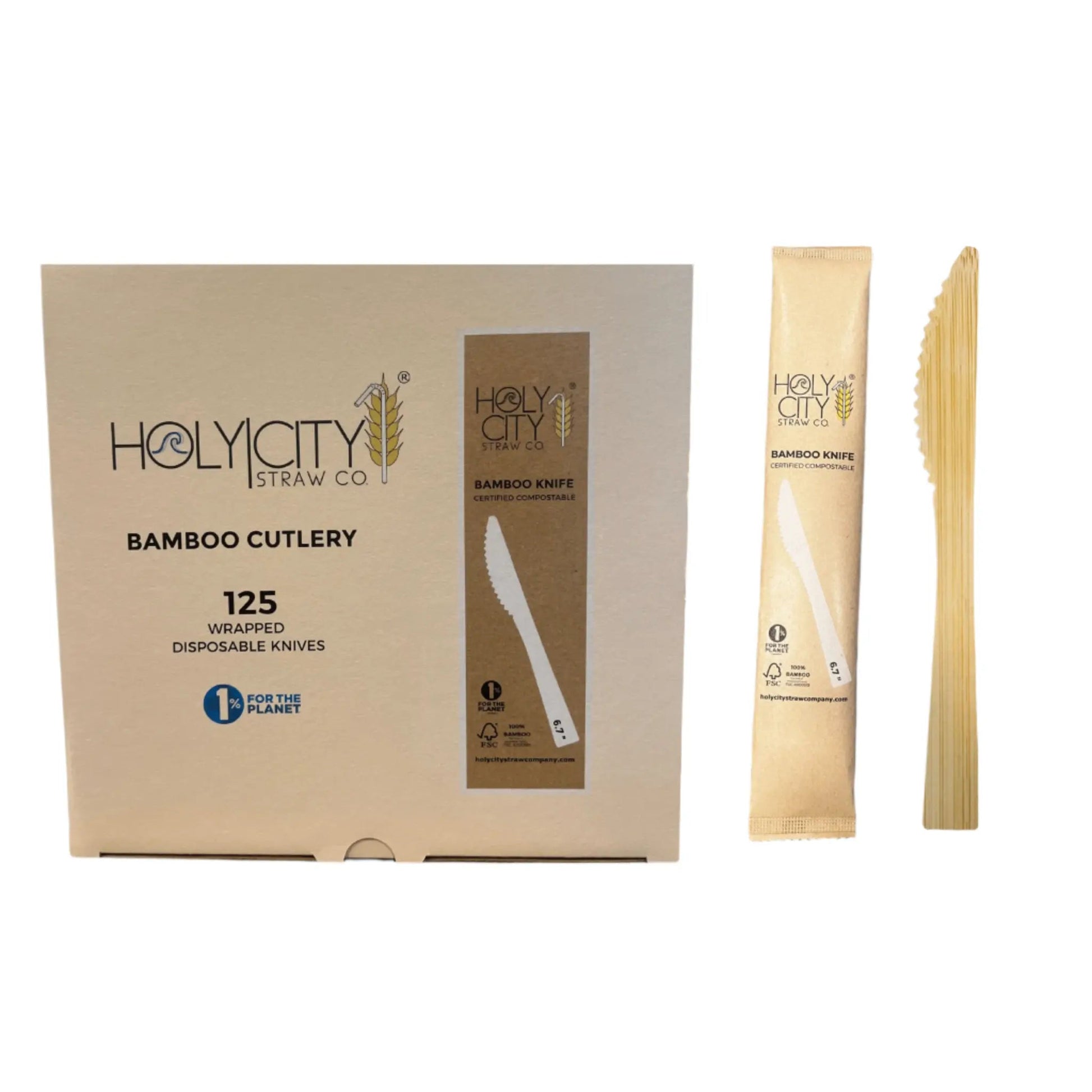 Introducing our eco-friendly 6.7" wrapped disposable bamboo knives - the perfect blend of sustainability and functionality! Crafted from high-grade bamboo, these knives are not only durable and water-resistant but also naturally antibacterial, ensuring a hygienic dining experience. Bamboo, one of the fastest-growing grasses on the planet, regenerates from its roots and is carbon negative, absorbing more greenhouse gasses and producing more oxygen than plants or trees.