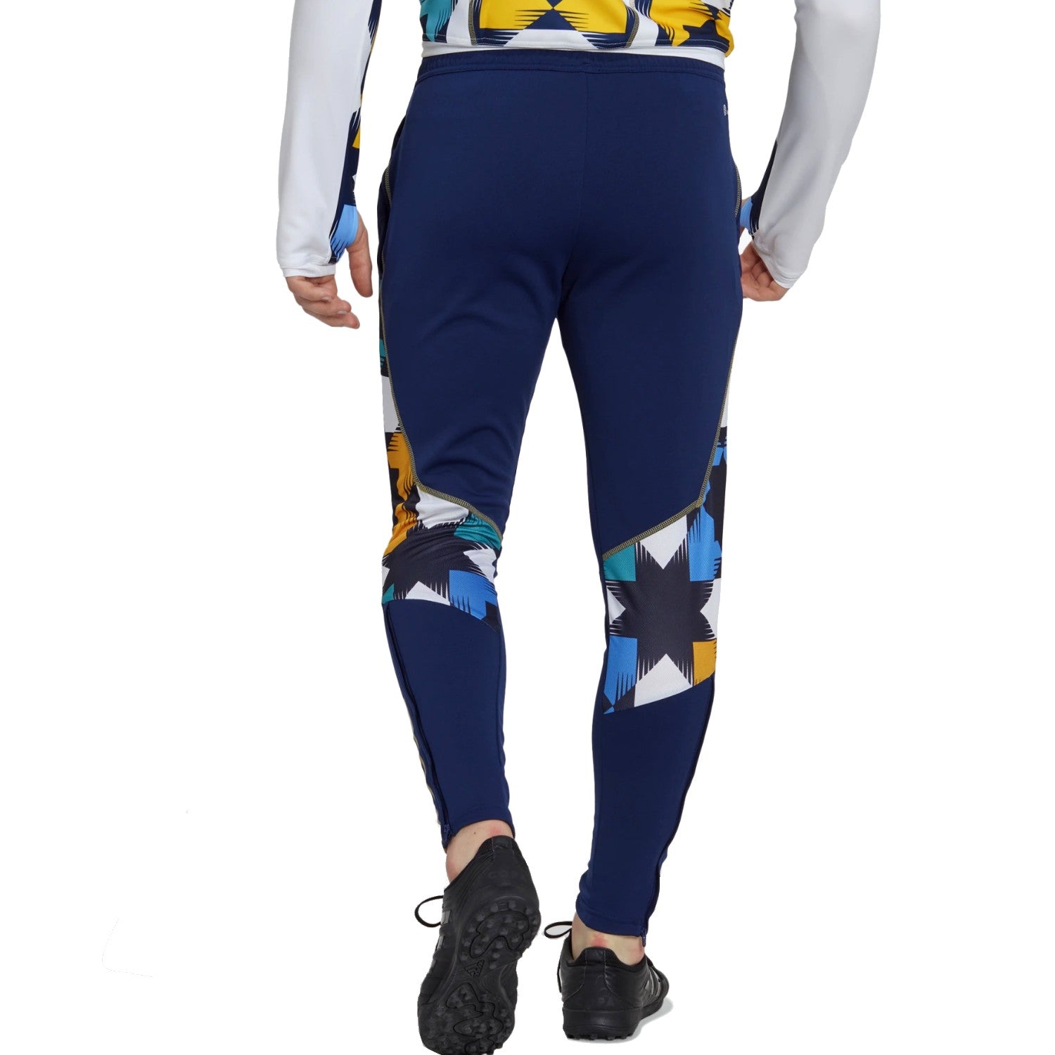 Authentic Algerian national soccer team technical training set for 2022/2023 international season, designed by technical sponsor Adidas for the iconic north african side. This stunning, modern looking collector's tracksuit features white 1/4 zip technical sweatshirt and matching navy training pants, both with gold stripes and a beautiful yellow/blue artistic pattern; comfortable pro feeling for your jogging and training session. Buy it now, show your soccer passion and wear with pride the colors of Algeria!