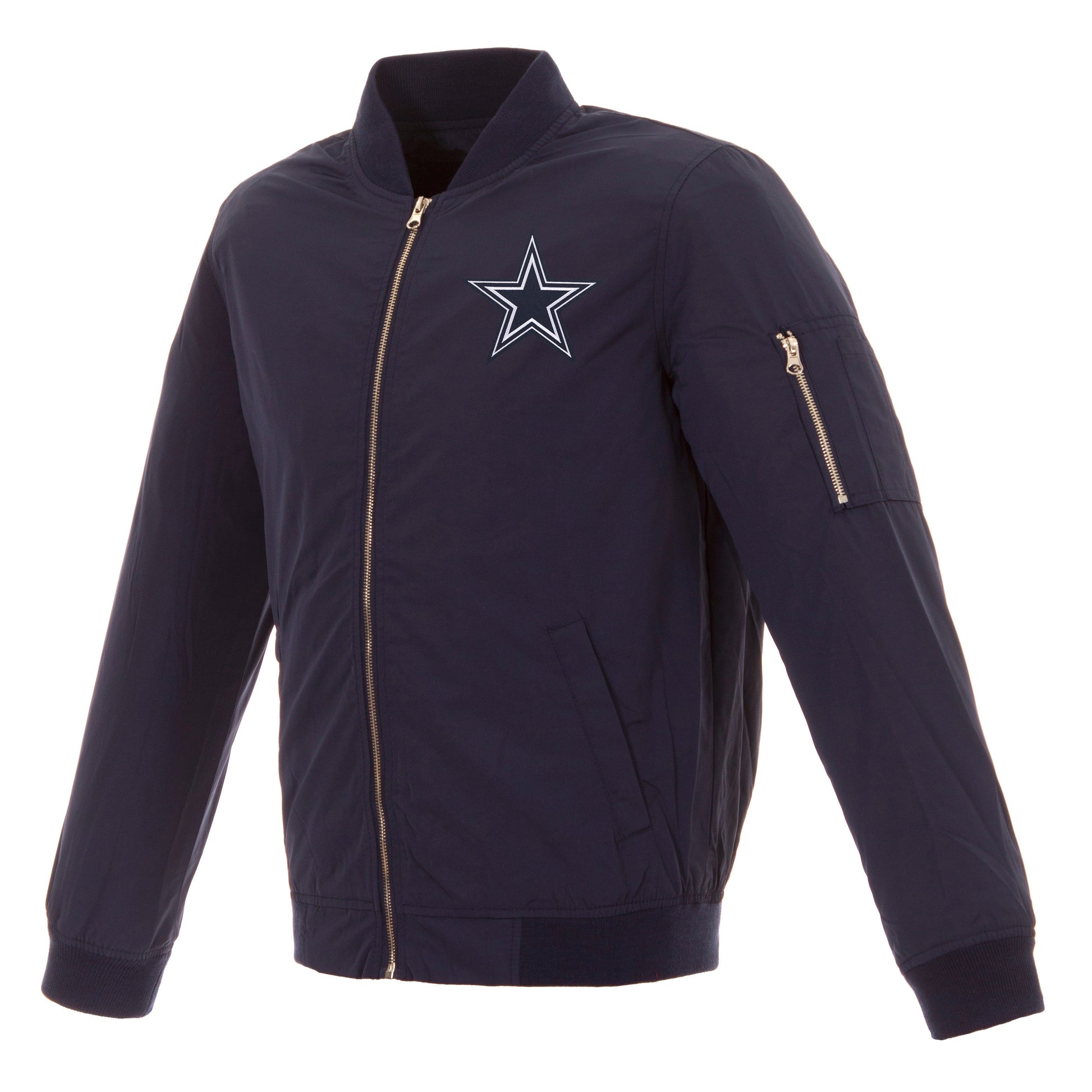 Dallas Cowboys nylon bomber in navy with embroidered logos.