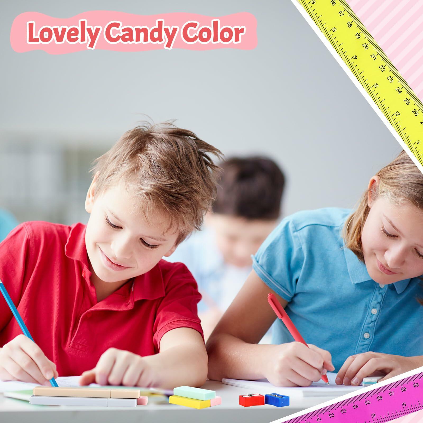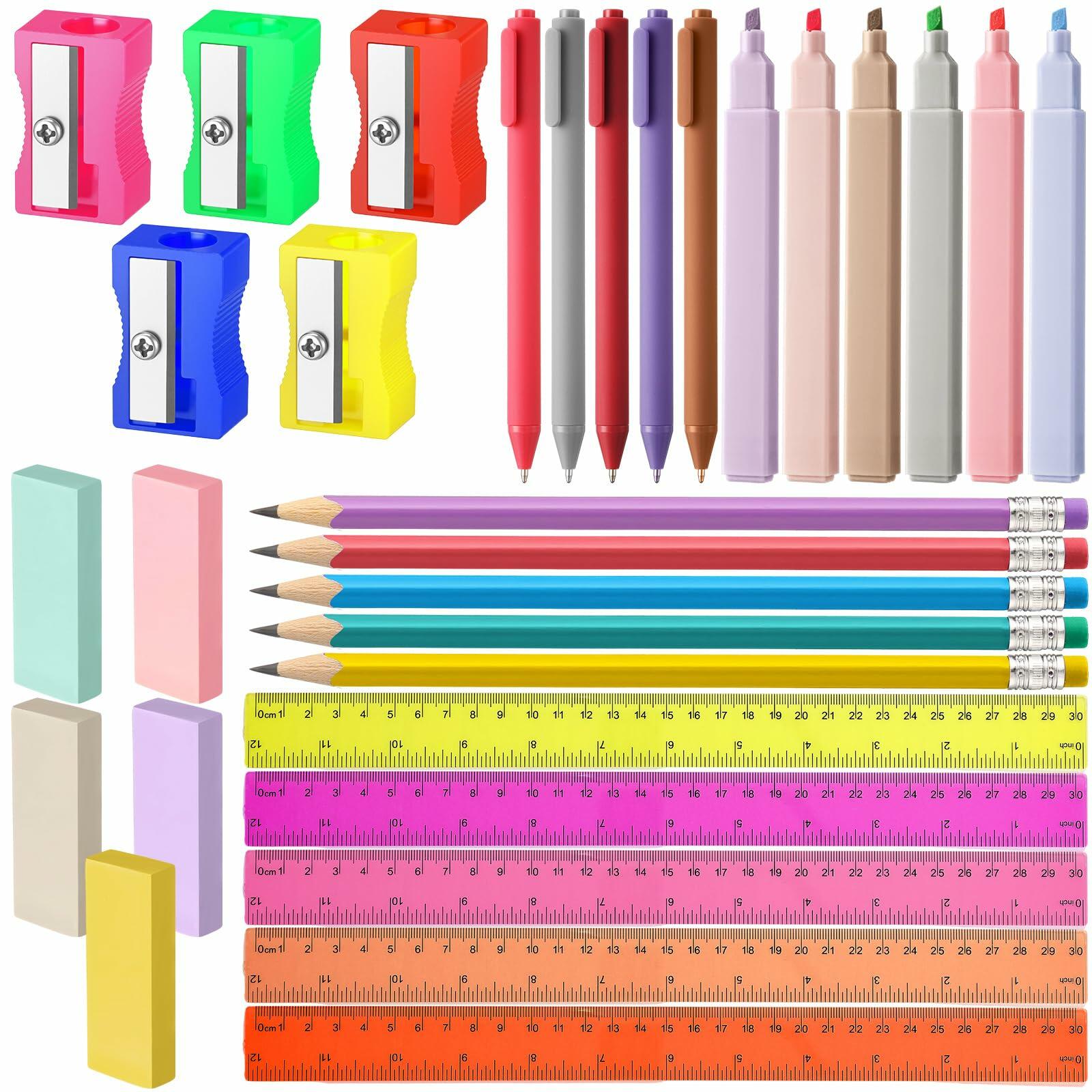 - And Practicality: these school supplies bulk are made of student friendly materials and are designed for daily use; Our rulers are dual scale and measure approximately 12 inches/30 cm; This school supply set is suitable for a variety of occasions; Whether measuring, writing, highlighting, or sharpening, this stationery set meets all basic needs and performs reliably