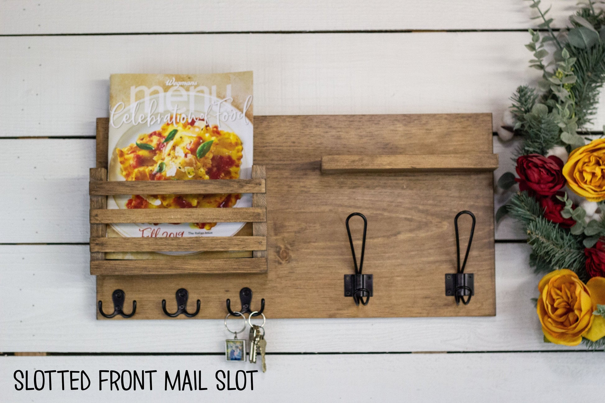 PLEASE NOTE- Hand crafted in NY with new pine. Each piece is custom made from new wood. Wood grain variations and/or knots are to be expected and will vary from the picture shown. Due to the character of wood, sometimes knots or imperfections are present. We feel that slight imperfections help add to the character of our handmade signs. Back is unpainted/unstained. *This listing is for an empty mail sorter. Mail sorter does not include letters, flowers, jar or keys* The natural variations in wood products include, but are not limited to... wood grain pattern, color variations, hairline cracks, small dents or scratches, knots, and/or mineral streaks.