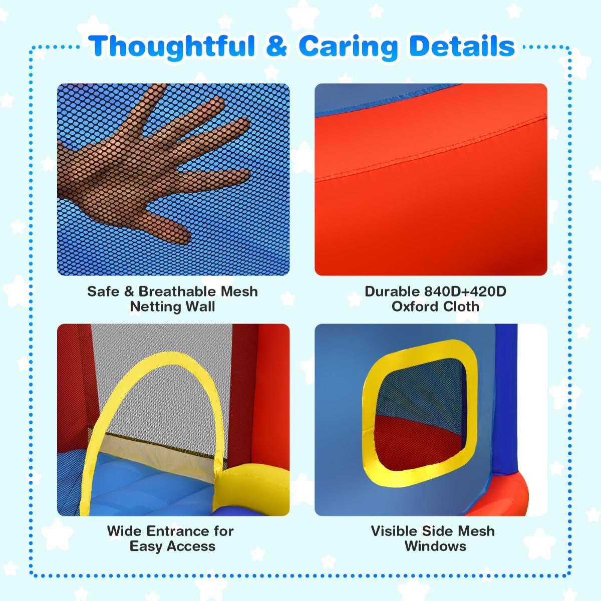 Durable Material & Safety Protection: Made of wear-resistant and anti-tear 840D+420D oxford cloth with fine sewing technology, this inflatable bouncer ensures great stability and durability. As for safety, the jumping zone is surrounded by high-density and breathable mesh netting walls to let kids bounce freely.