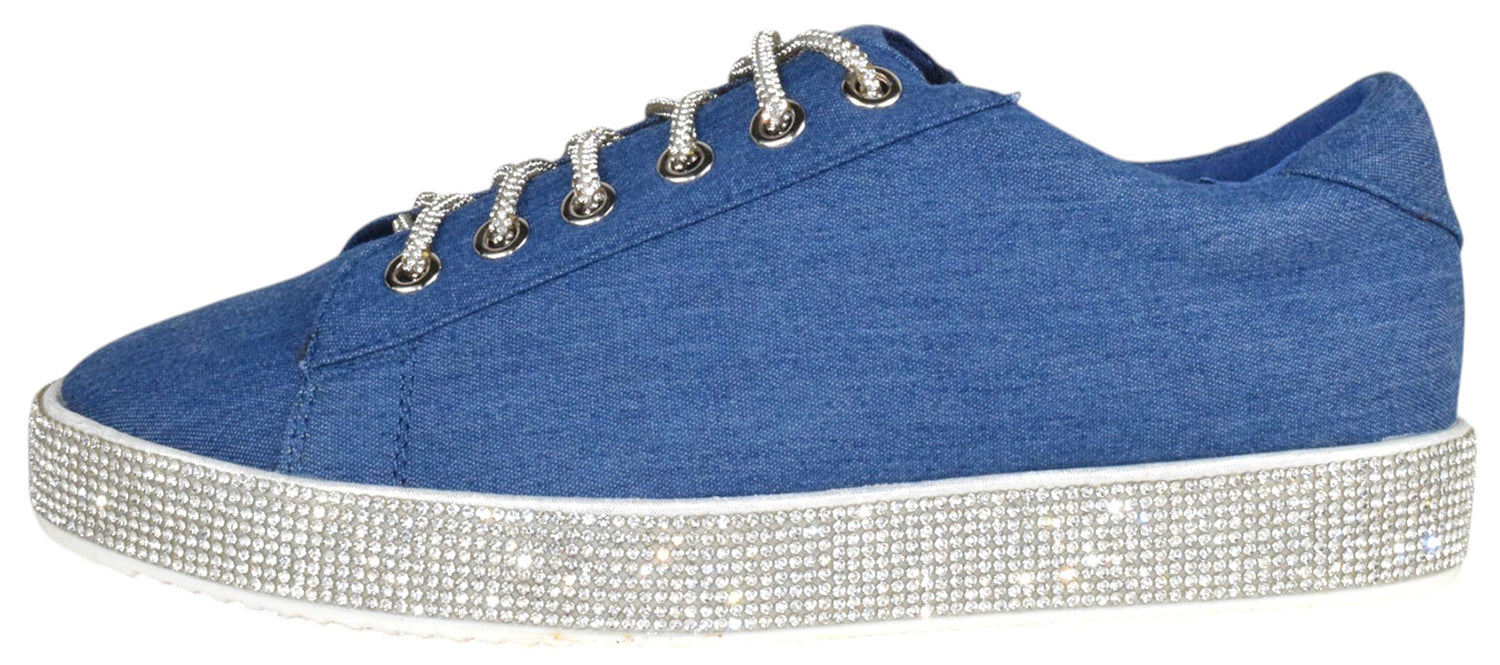 - La Sheelah Shoes Women Flat Fashion Sneakers Crystals Rhinestone Blingy Lace Up SCOUT-24