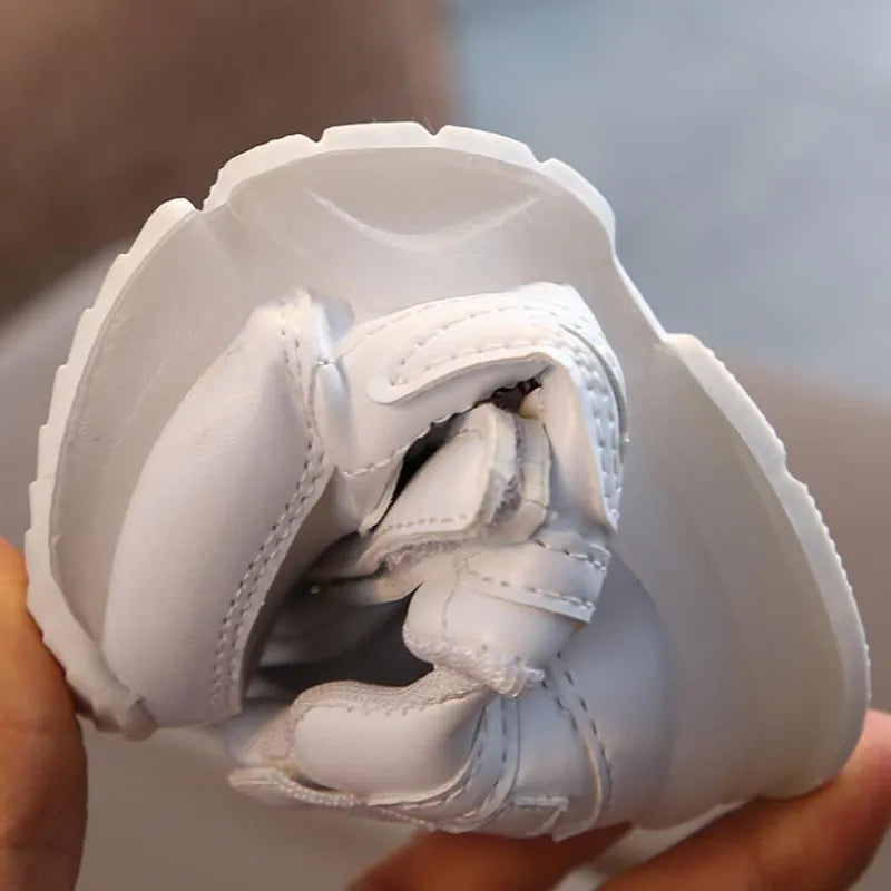 These eco-leather sports shoes, with laces and Velcro closure, are perfect for running and having fun safely outdoor... and look how fashion is the LED sole!