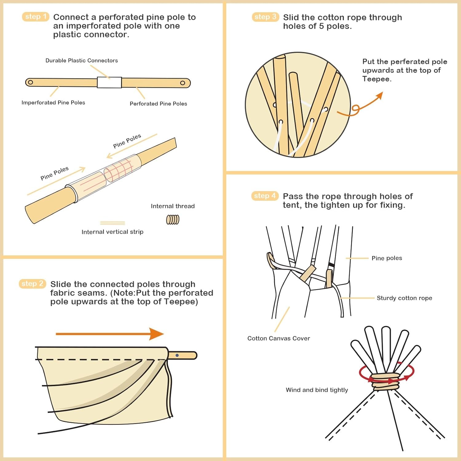 - Natural canvas + pine poles combine durability and a warm, timeless look. Premium fumigated pine poles provide sturdy support for years of use.