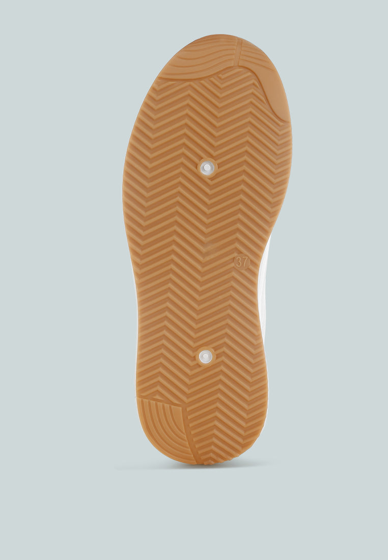 Step out in style with these chunky wedge heeled sneakers featuring mesh panels that add a subtle contrast. The lace fastening and soft cushioned insoles retain optimum grip and support. Team this pair with your casual ensembles for comfort blended with fashion.