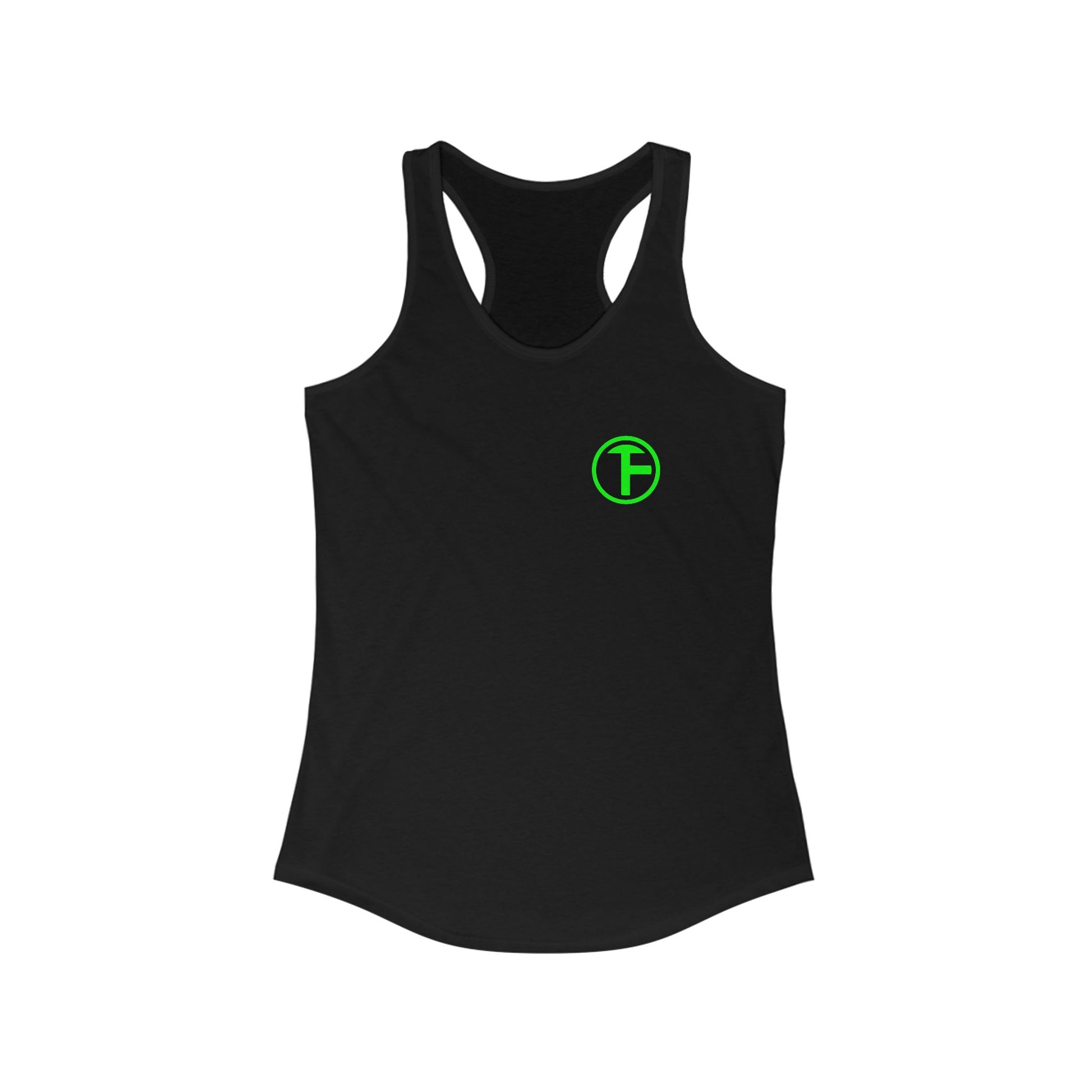 A high-quality print of this slim fit tank-top will turn heads. Bystanders won't be disappointed - the racerback cut looks good on any woman's shoulders.