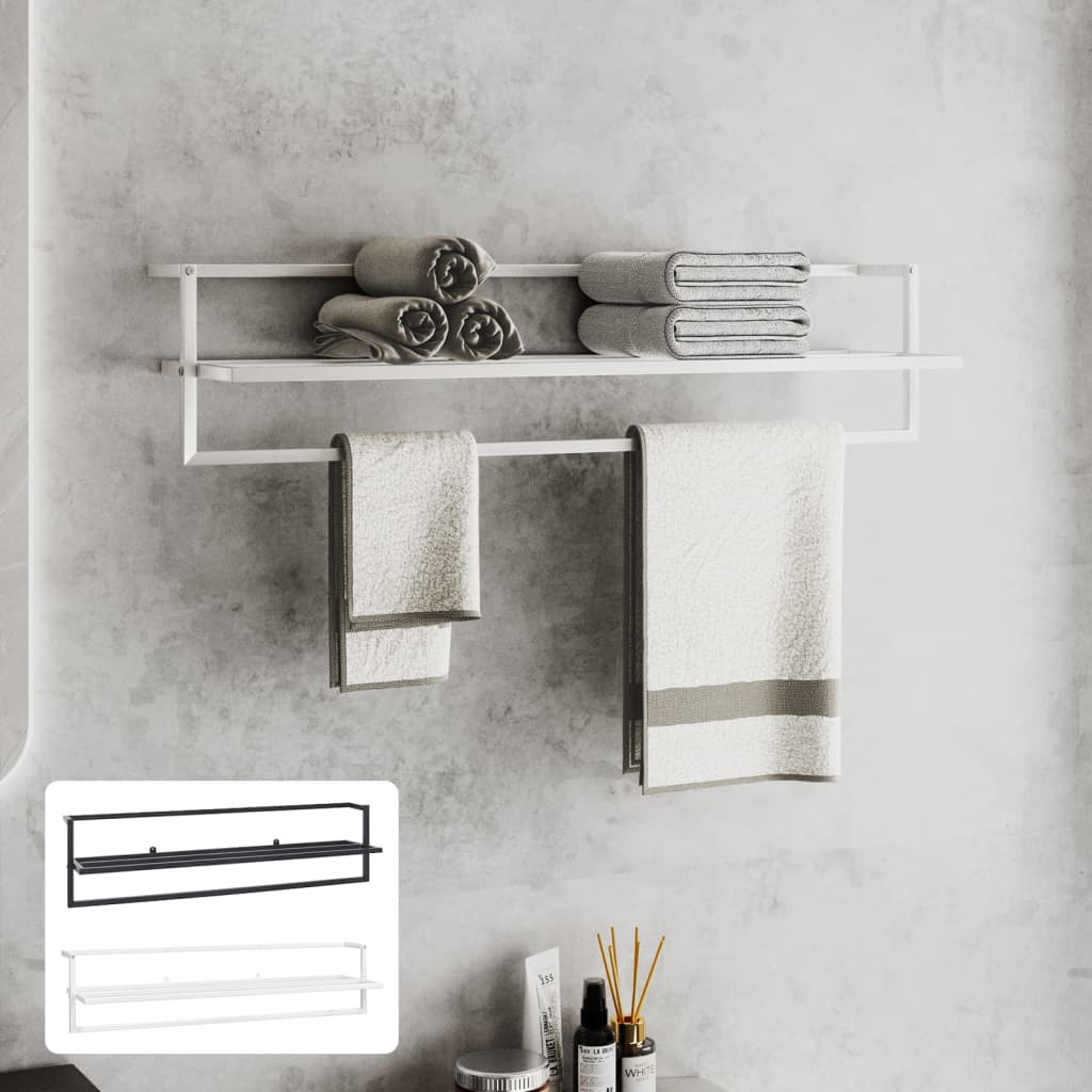 The towel holder is made of sturdy iron which makes it stable and durable. The wall rack, featuring a shelf, provides ample space for placing towels to help keep your bathroom clutter free.