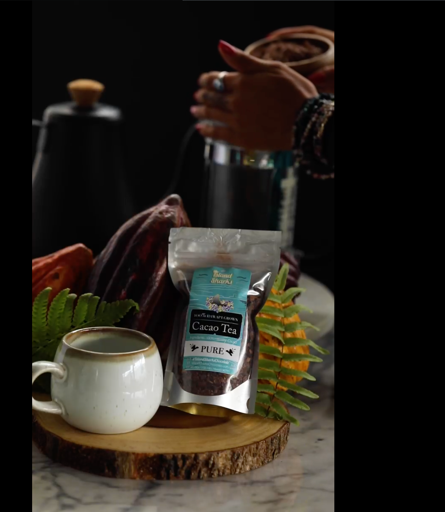 Let the pure taste of Hawai'i kill your coffee craving and reverse mental / physical / emotional exhaustion. Cure your magnesium deficiency, boost your immunity and do so much more! This is the healthiest (and we think tasiest) drink next to water! Brew with water to extract deep cocoa flavors, minerals and more anti-oxidants than any other food. Get ceremonial and try this with a daily intention to support and elevate your mood. Makes 6 to 12 regular cups and 3.5 ceremonial doses. https://www.islandsharkschocolate.com/product-page/100-pure-hawaiian-cacao-tea